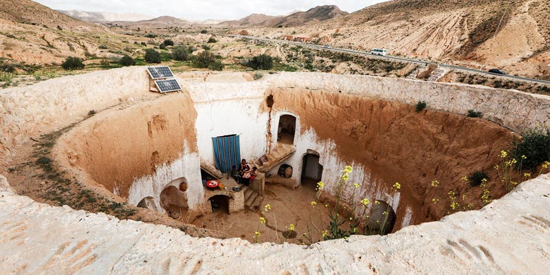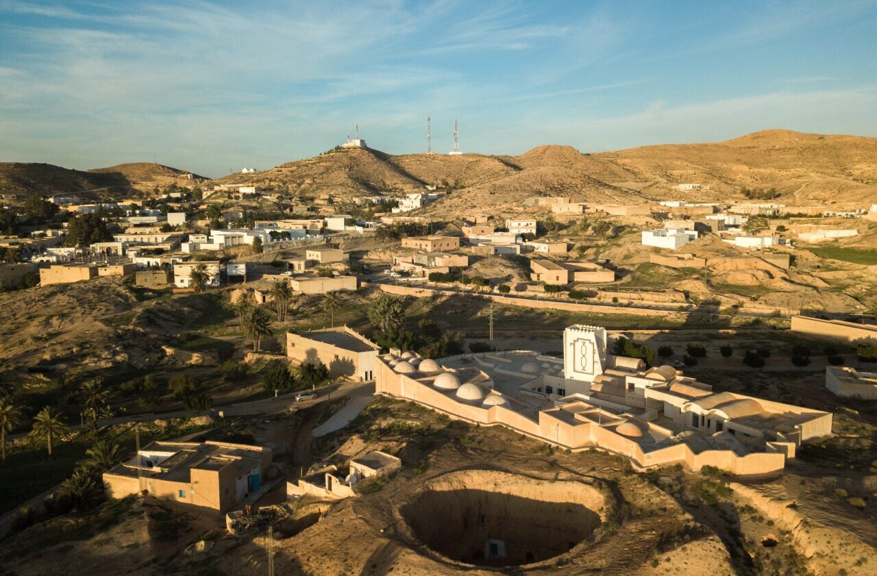 Pequeno vilarejo tunisiano, Matmata é uma região impressionante. Seu ponto principal são as chamadas casas trogloditas, construídas por povos antigos, escavadas nas rochas. Habitações fantásticas e que fascinam por sua complexidade. A paisagem é verdadeiramente cinematográfica, as colinas combinadas com o imponente deserto do Saara são de tirar o fôlego, e serviu de cenário para filmes da famosa franquia Star Wars.