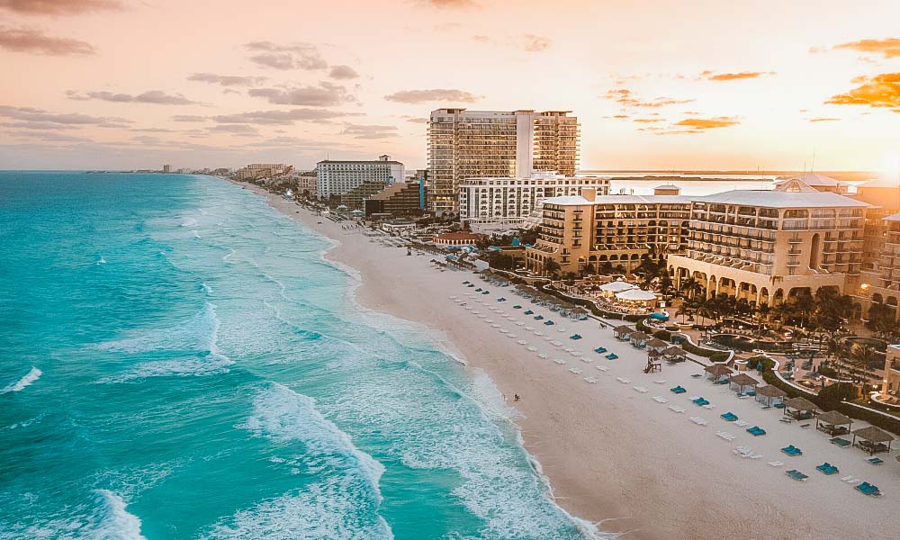 Um dos destinos mais cobiçados do México, a cidade de Cancun é uma das mais belas e agitadas do país. Um verdadeiro paraíso tropical, o local possui praias e ilhas banhadas por águas cristalinas, quentes e calmas, que criam cenários cinematográficos, de tirar o fôlego. Sua orla repleta de resorts de luxo à beira mar dão todo o conforto e estrutura necessários para se aproveitar da melhor maneira. A vida noturna é de grande destaque: bares e baladas animadas não tem hora para fechar, e mantém vivo o espírito jovial e alto astral do lugar.