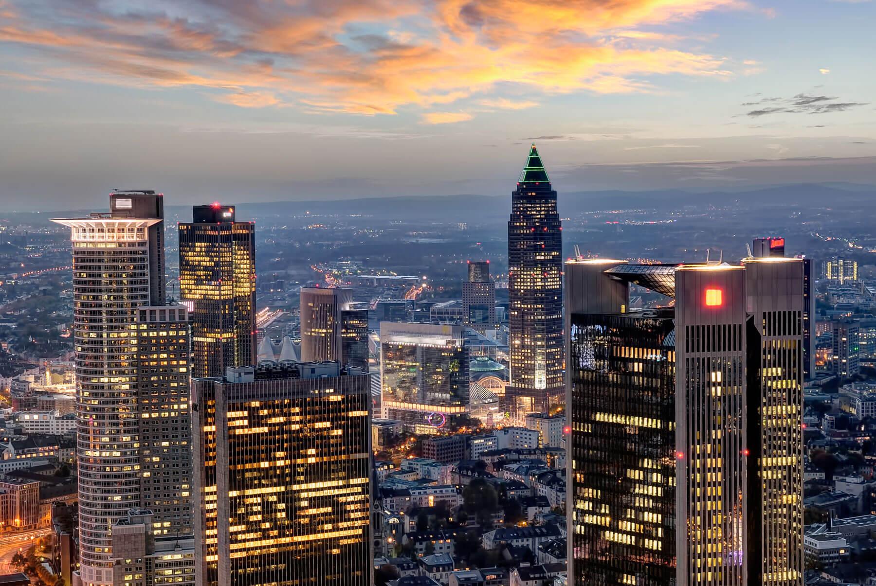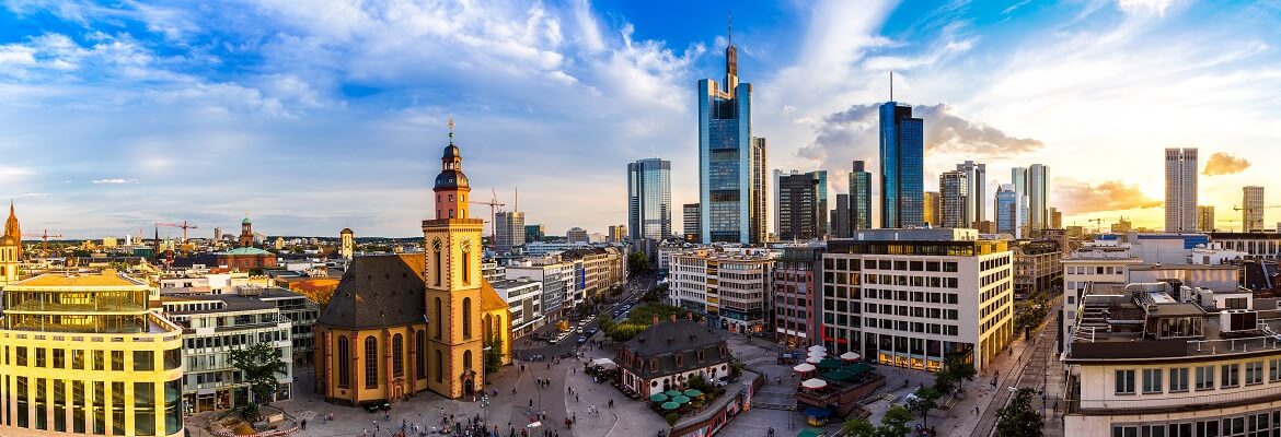 Bastante destruída durante a Segunda Guerra Mundial, Frankfurt se reconstruiu rapidamente. Grande parte dos prédios antigos foi restaurada e mantida para preservar a história, porém o destaque ficou com os novos arranha-céus que dominam o local. Conhecida por ser um dos grandes centros comerciais da Europa, diversas empresas movimentam as modernas construções e, claro, a economia. O intenso cenário urbano divide espaço com as várias áreas naturais, que complementam o charme do lugar. Sua cena cultural é de grande porte: museus, monumentos, feiras ao ar livre e shows atraem visitantes curiosos todos os anos.