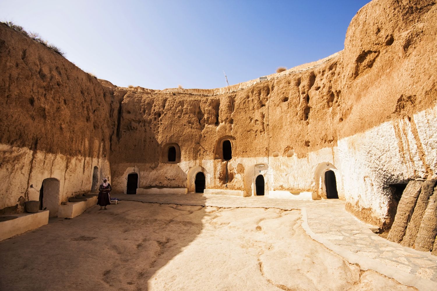 Pequeno vilarejo tunisiano, Matmata é uma região impressionante. Seu ponto principal são as chamadas casas trogloditas, construídas por povos antigos, escavadas nas rochas. Habitações fantásticas e que fascinam por sua complexidade. A paisagem é verdadeiramente cinematográfica, as colinas combinadas com o imponente deserto do Saara são de tirar o fôlego, e serviu de cenário para filmes da famosa franquia Star Wars.